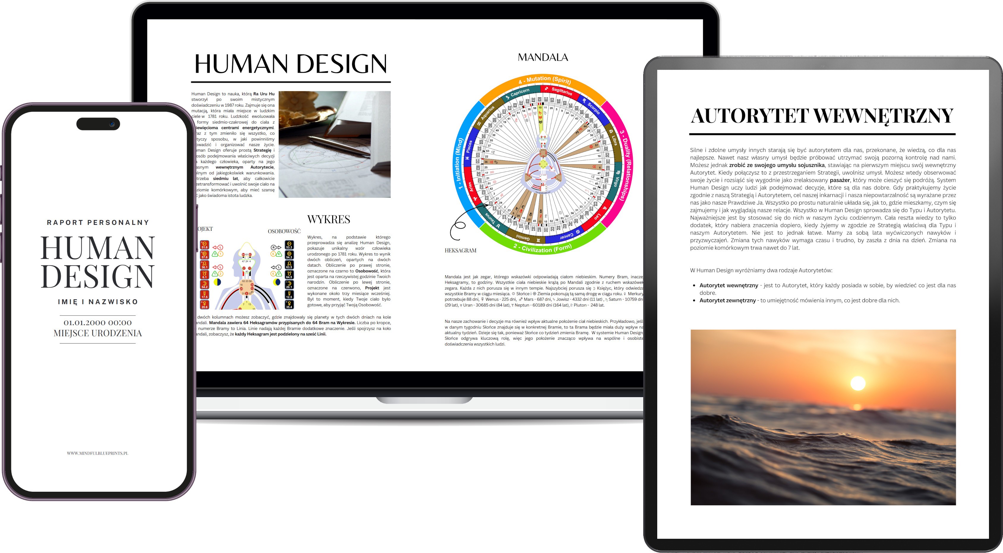 Odkryj swój unikalny wykres Human Design dzięki naszemu szczegółowemu Raportowi Personalnemu! Wygodny i obszerny przewodnik w formie e-booka PDF, który dostarczy Ci głębokich i spersonalizowanych informacji o Tobie.